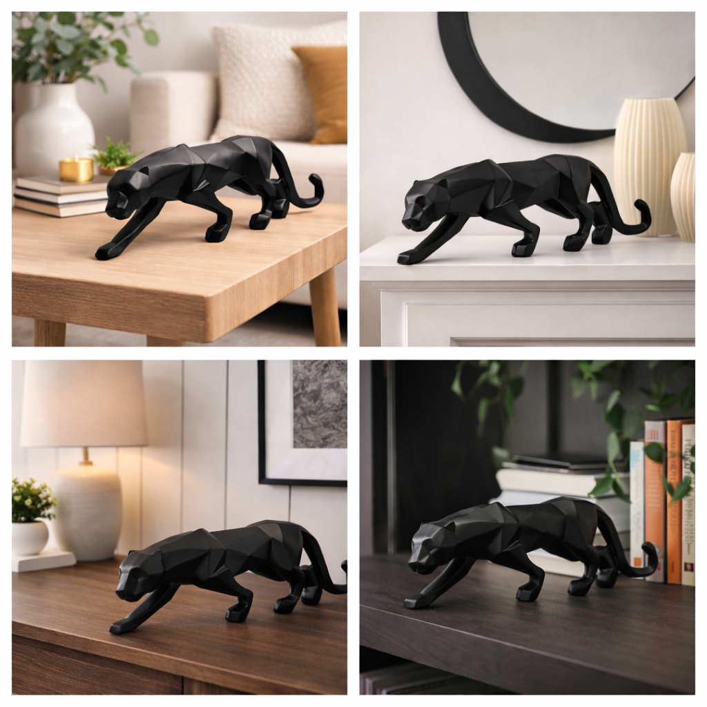 Unleash bold elegance with this hand-crafted panther sculpture. Designed with striking detail and a luxurious finish, it enhances living spaces, offices, or TV units with refined charm. Made from high-quality resin, it's durable, eco-friendly, and makes an ideal gift for festivals, weddings, housewarmings, or corporate events.