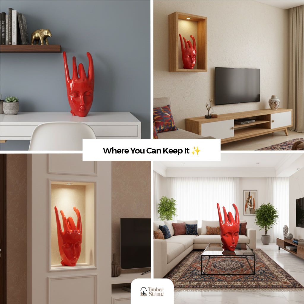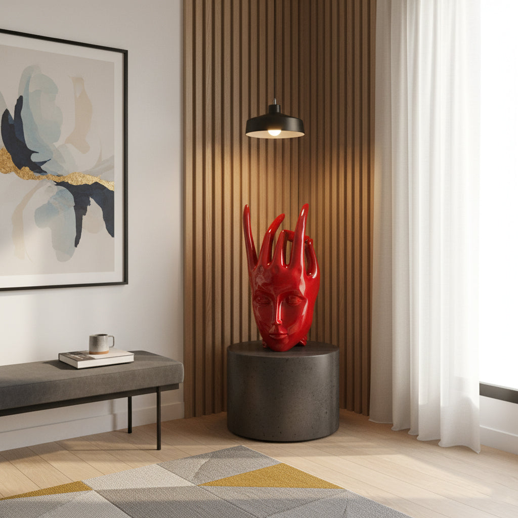 The Regal Red Crowned Mudra Zen Face Sculpture looks absolutely divine! Its detailed design and rich red tone give such a peaceful yet."