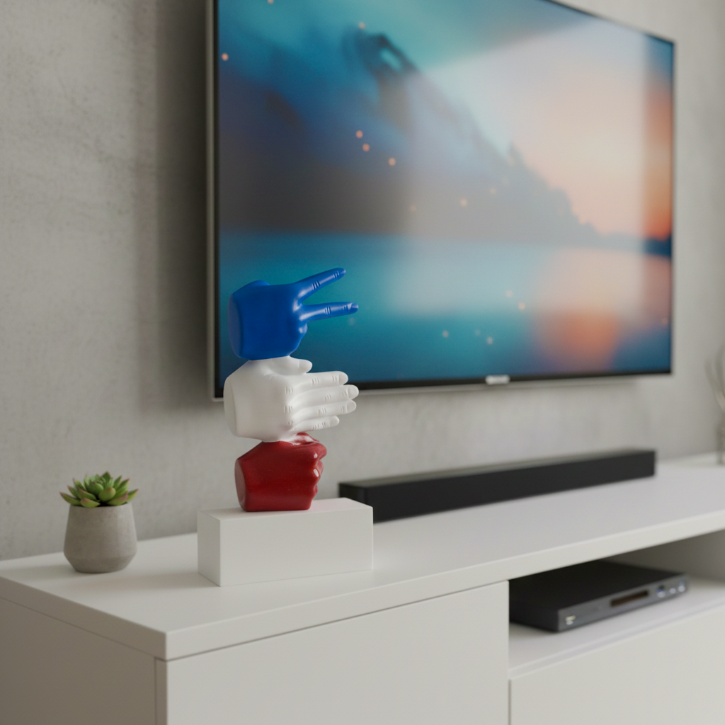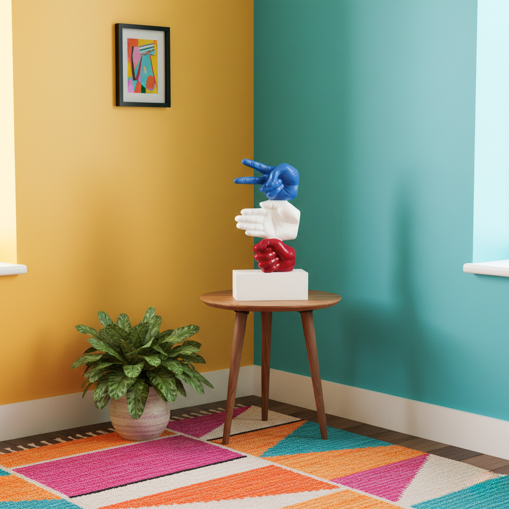 Colorful Hand Sculpture – Rock, Paper, Peace ✋