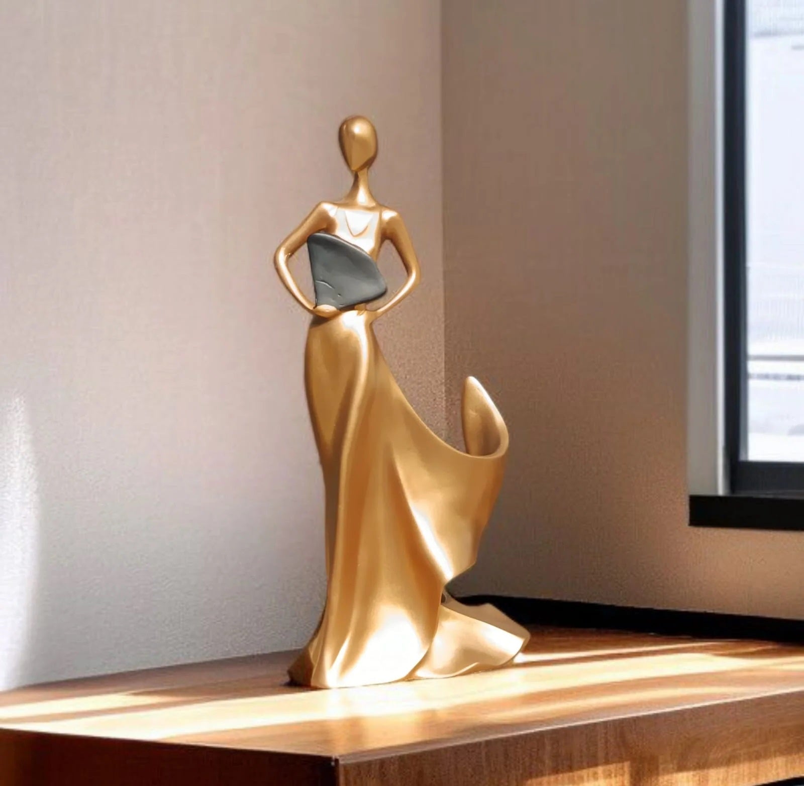 - Elegant Design: Sculpted female form in a graceful golden gown
